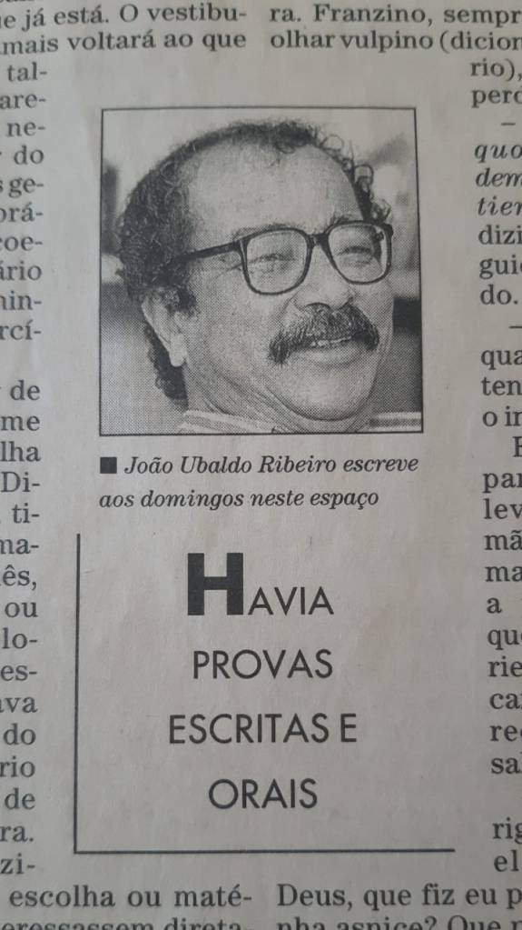 Esta crônica foi publicada no jornal “O Globo” (e em outros jornais) na edição de domingo, 13 de setembro de 1998 e integra o livro “O Conselheiro Come”, Ed Nova Fronteira – Rio de Janeiro, 2000, pág. 20.